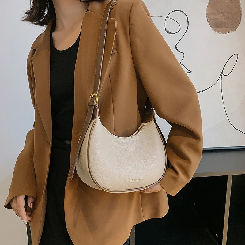 Винтажные сумки через плечо для женщин, дизайнерские сумки 2022, роскошные однотонные сумки через плечо с узором в виде полумесяца и личи, Bolsos
