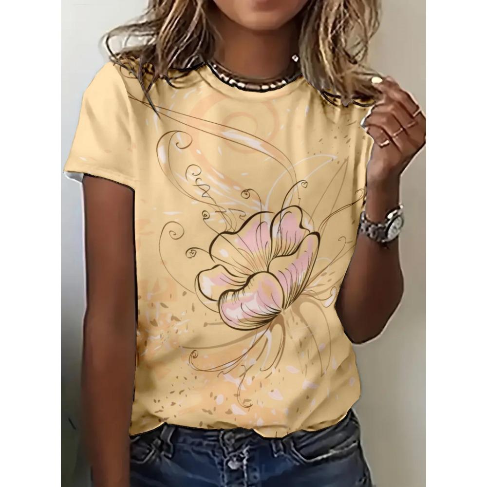 Винтажные футболки с цветочным принтом для женщин, летние топы, повседневные футболки с коротким рукавом для девочек, уличная одежда, женские футболки, топы 6XL