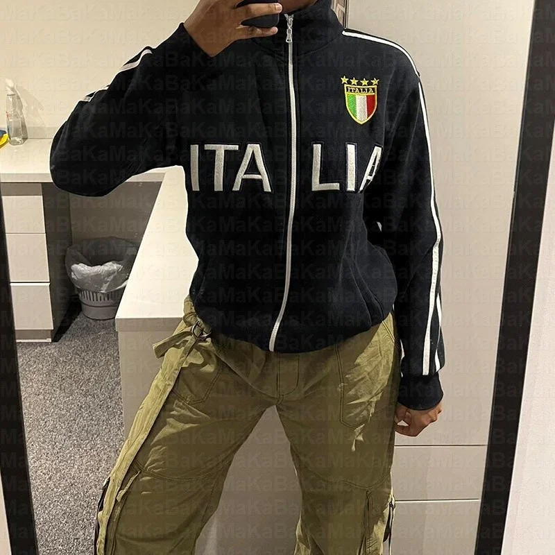 Винтажные черные толстовки Y2K в эстетике, толстовки на молнии с Вышивкой Букв и графическим рисунком, Готическая куртка в стиле ретро 1920-х годов, пальто