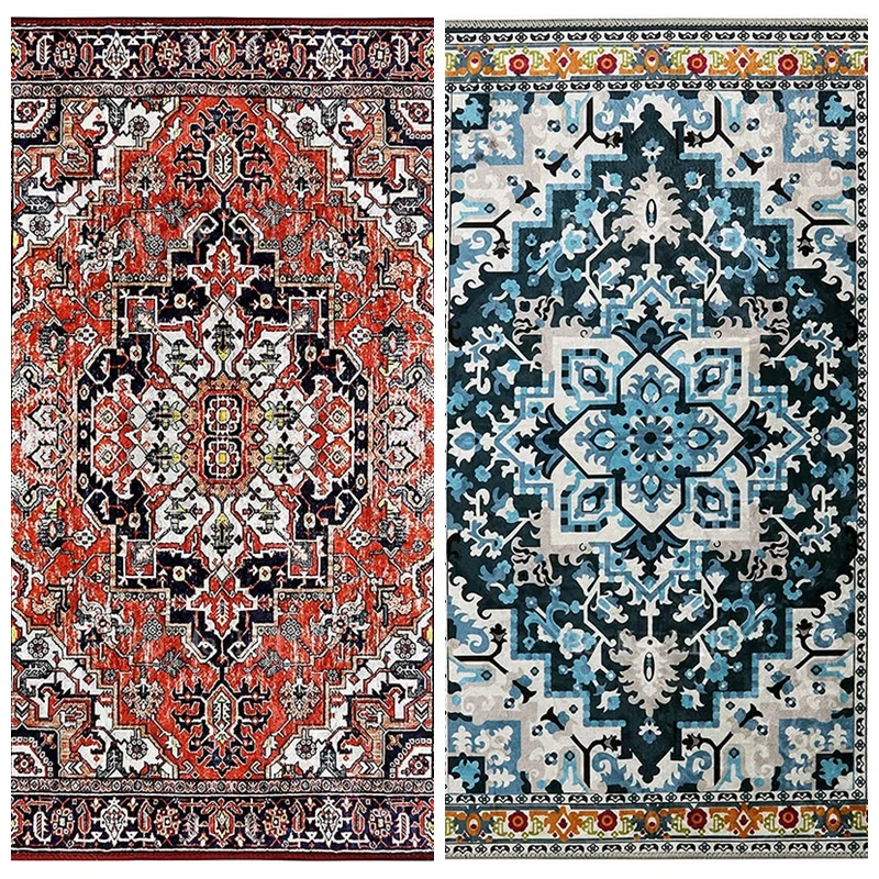 Винтажный Восточный медальон, фланелевый напольный коврик, нескользящий маленький внутренний декоративный красный синий ковер для прихож...