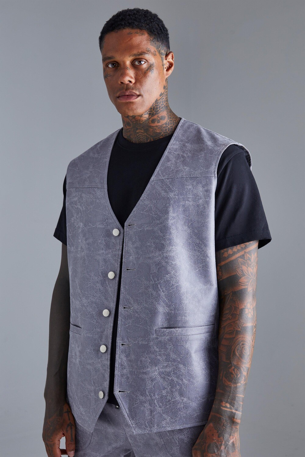Винтажный жилет оверсайз из пу Boohoo, угольный