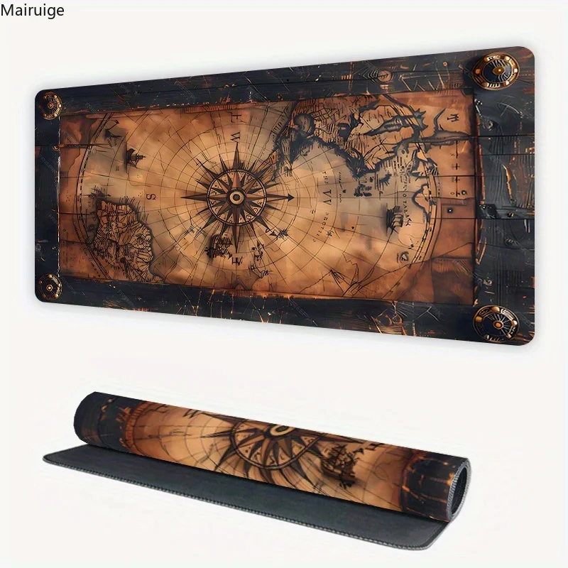 Винтажный коврик для мыши в стиле стимпанк с компасом, большой игровой коврик для офисного стола, нескользящие прошитые края для геймеров и домашнего офиса