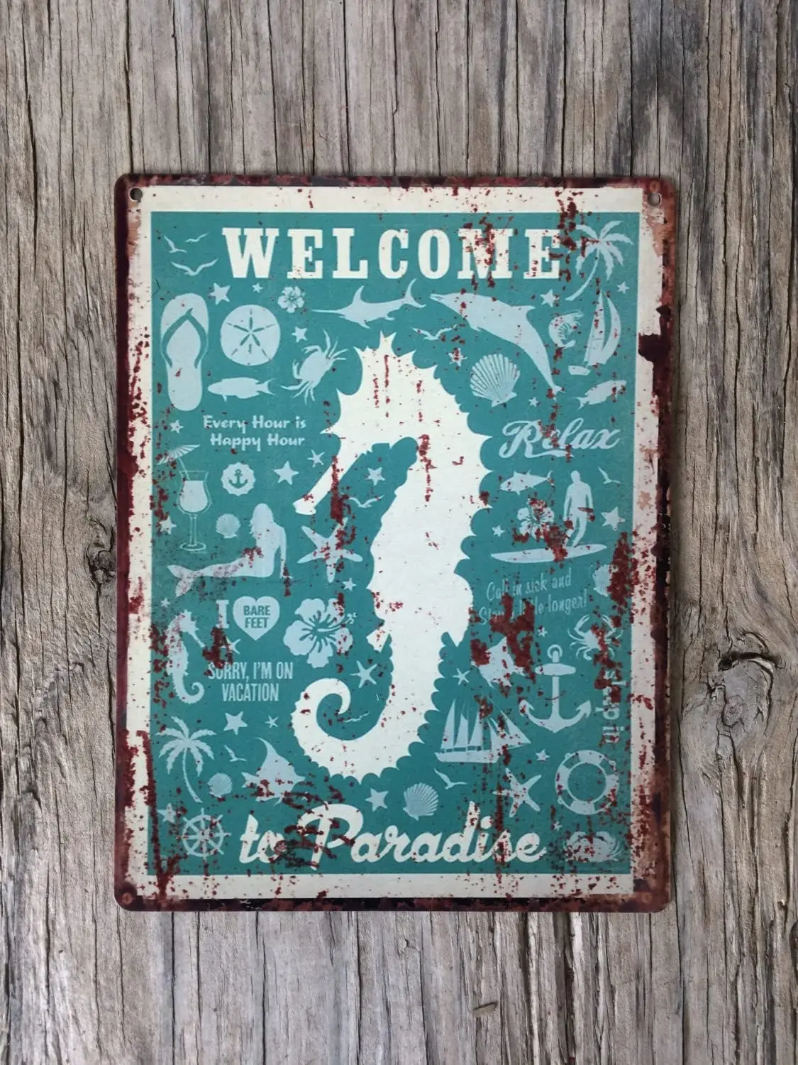 Винтажный металлический жестяной знак 8x12 дюймов, подарок для винтажного побережья, морского конька, русалки, алюминиевый жестяной знак, знаки для сада и двора