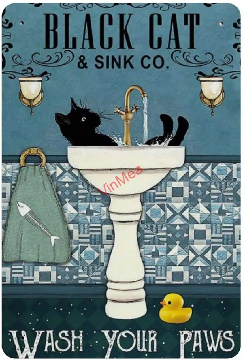 Винтажный металлический знак в стиле ретро, раковина с черной кошкой, Репродукция ваших лап, металлический жестяной знак, Настенный декор д...