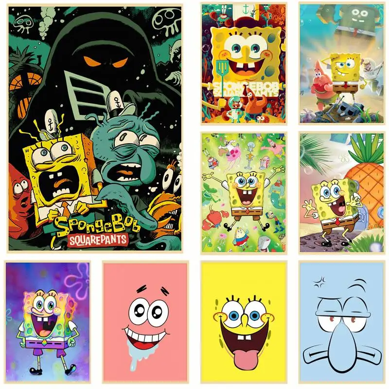 Винтажный персональный постер с мультяшными губками и квадратными штанами, для бара, кафе, гостиной, спальни, художественная картина, декор ...