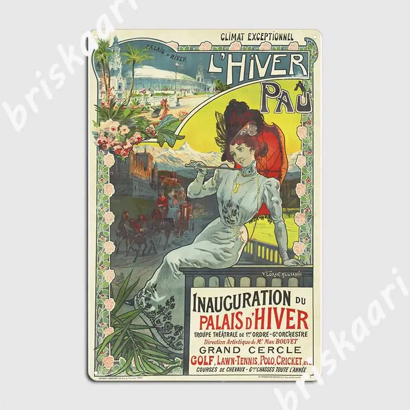Винтажный постер для путешествий L Hiver A Pau Winter In Pau France Grand Circle, рекламный постер для отелей, металлический знак, плакаты