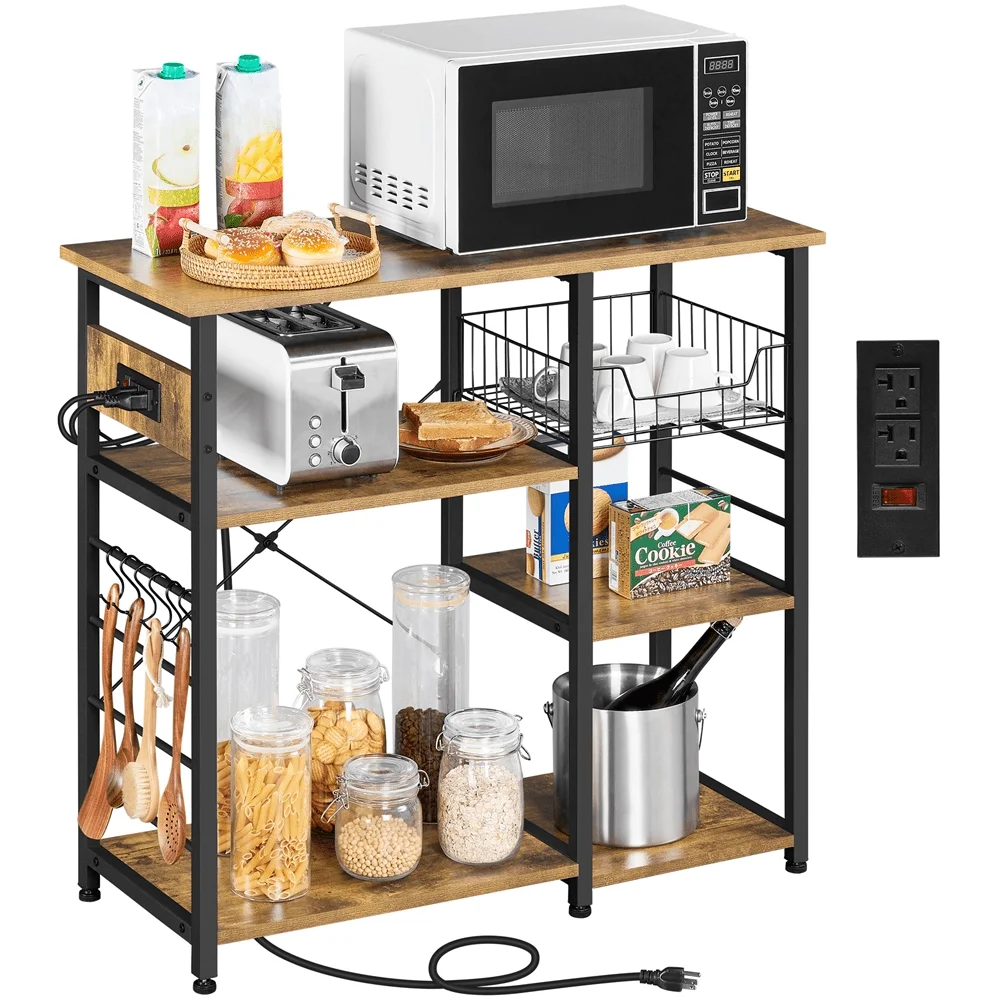 Винтажный стеллаж SmileMart для пекарни с розеткой питания для кухни, Деревенский коричневый
