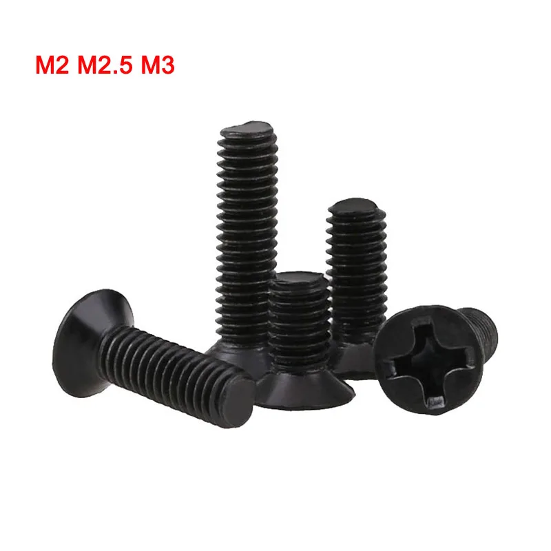 Винты с потайной головкой Phillips для ноутбука из черной оцинкованной углеродистой стали, крестовые болты с плоской головкой M2 M2, 5 м3, длина 3-16 ...