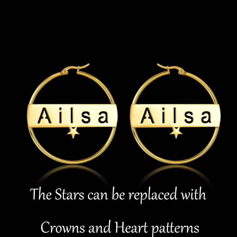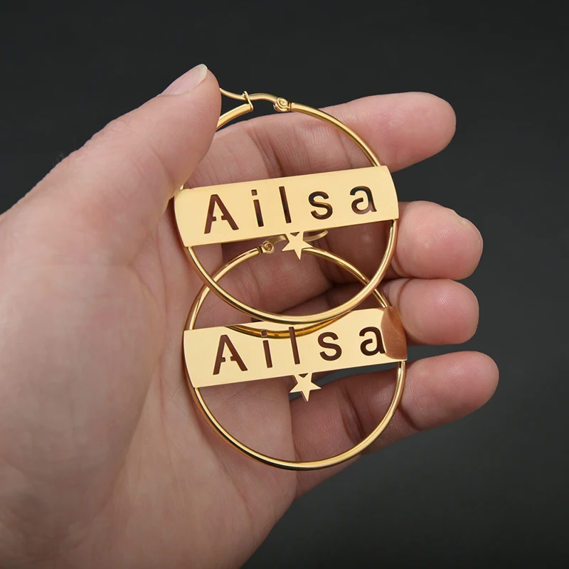 Висячие серьги с именем на заказ, звезда, панк, табличка с табличкой из нержавеющей стали