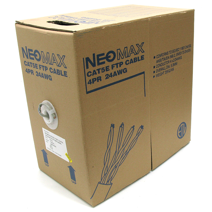 Витая пара FTP кат.5e, 4 пары, CU, 0.5 мм, 305м., внутренний, одножильный, серый, Neomax (NM20001)