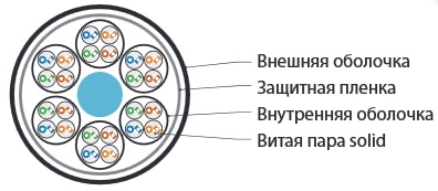 Витая пара UTP кат.5, 24 пары, CU, 1м., внутренний, одножильный, LSZH, серый, Hyperline (UUTP24W-C5-S24-IN-LSZH-GY)
