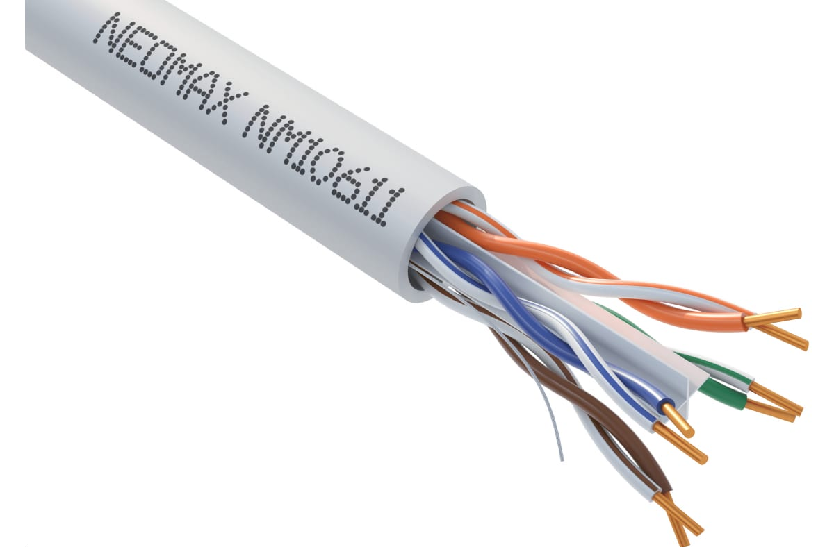 Витая пара UTP кат.6, 4 пары, CU, 0.57 мм, 305м., внутренний, одножильный, LSZH, серый, Neomax (NM10611)
