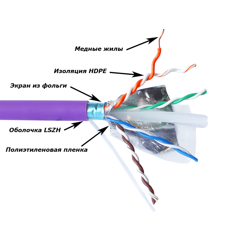 Витая пара UTP кат.6a, 4 пары, CU, 305м., внутренний, одножильный, LSZH, фиолетовый, Lanmaster (LAN-6AUMTP-HFLT)