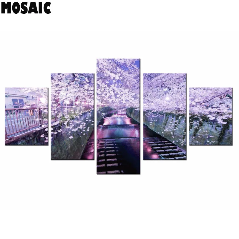 Вишня в цвету 5 шт. Набор для алмазной вышивки крестиком пейзаж картины рукоделие "сделай сам": Алмазная мозаика украшения