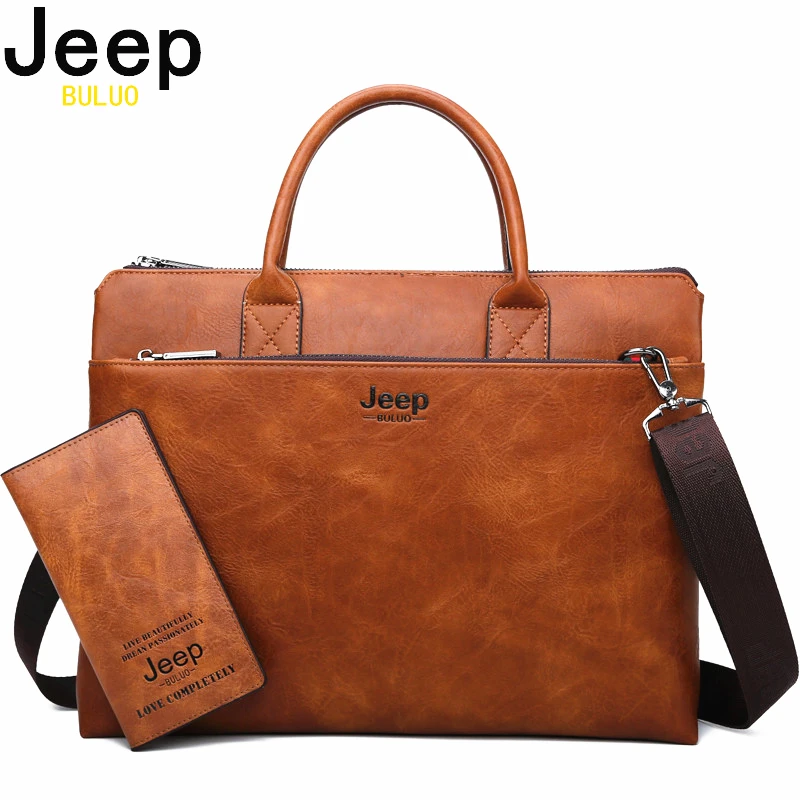JEEP BULUO High Quality Men Briefcases Set For 14 inch Laptop Business Bags Handbags Leather Office Shoulder Bags Large Capacity