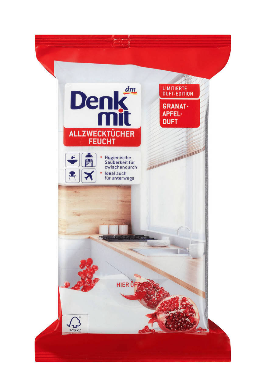 Универсальные влажные салфетки для уборки Denkmit с ароматом граната идеально подходят для быстрой и легкой очистки между основной уборкой.