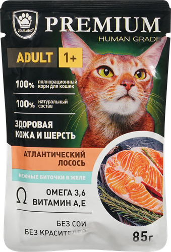 Влажный корм для кошек Zou Land Premium Лосось в желе 85 г