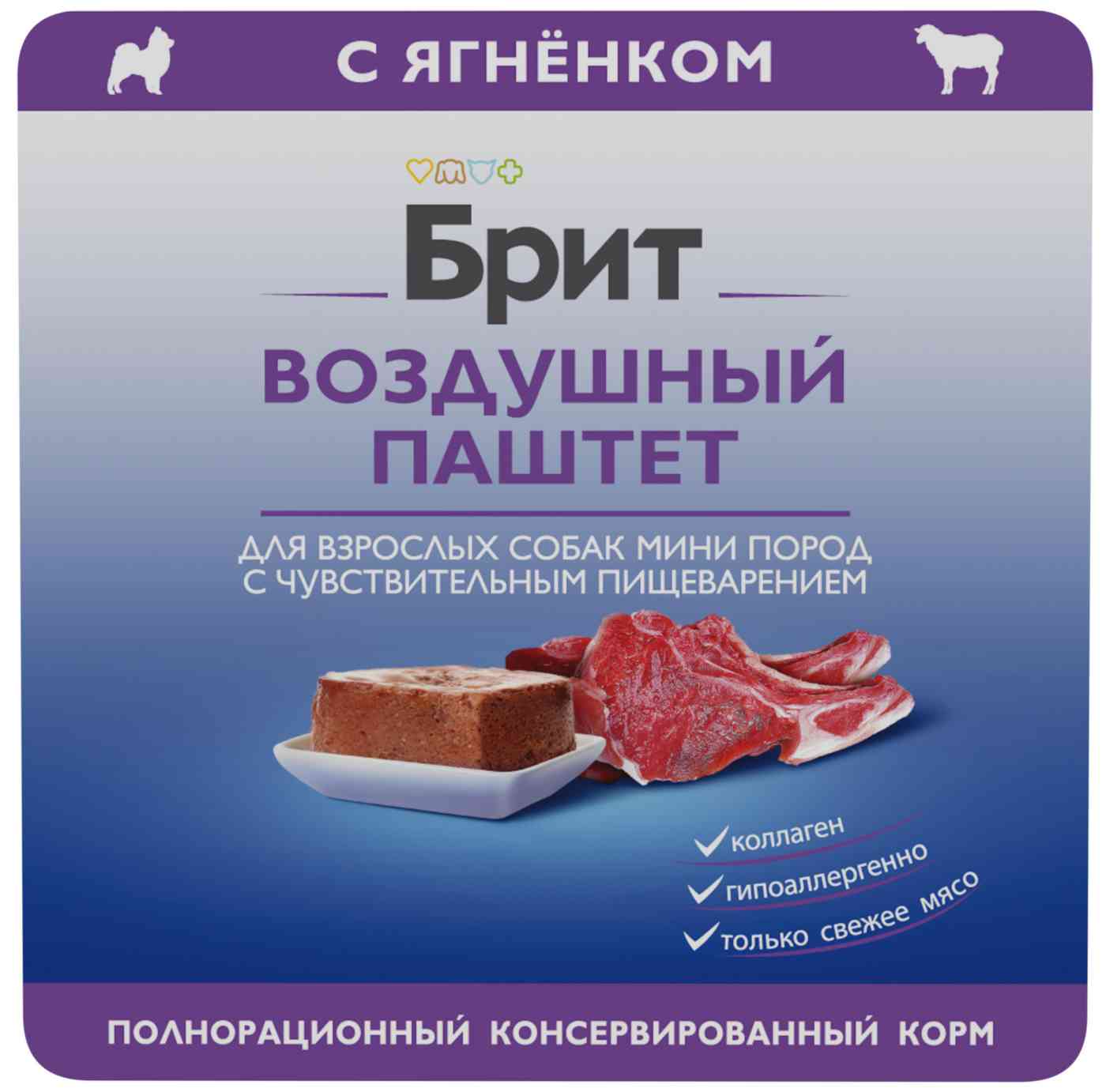 Влажный корм для собак мини пород с чувствительным пищеварением Брит ягненок воздушный паштет