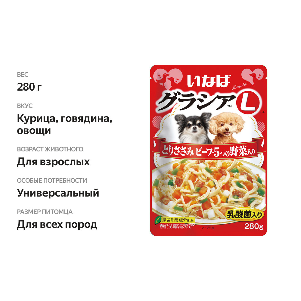 Влажный корм для собак Inaba Gracia L Куриное филе с говядиной и овощами в желе, 280 г