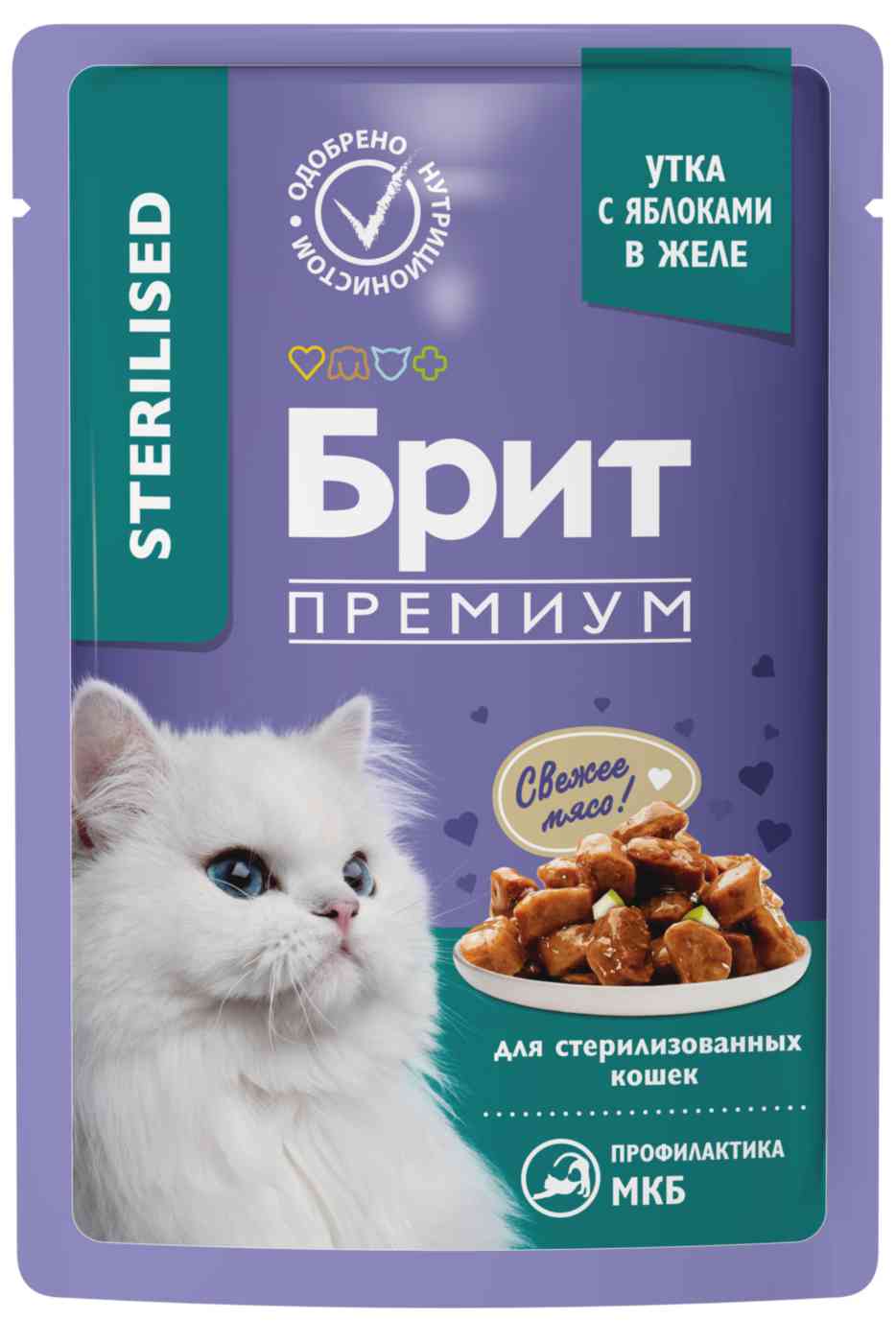 Влажный корм для стерилизованных кошек Брит Премиум утка-яблоки в желе