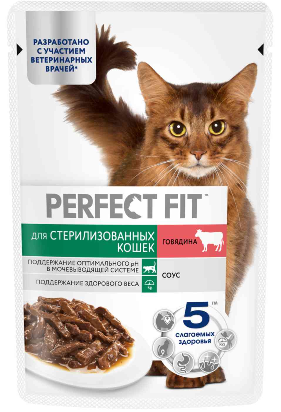 Влажный корм в паучах Perfect Fit™ с говядиной в соусе для стерилизованных кошек разработан по специальной рецептуре для контроля здоровья кошек, прошедших стерилизацию. Здоровье мочевыводящей системы - поддерживает здоровье мочевыводящей системы у стерилизованных кошек, подверженных повышенному риску развития мочекаменной болезни.Поддержание здорового веса - специальный ингредиент L-карнитин способствует сжиганию жиров, помогая поддерживать здоровый вес.