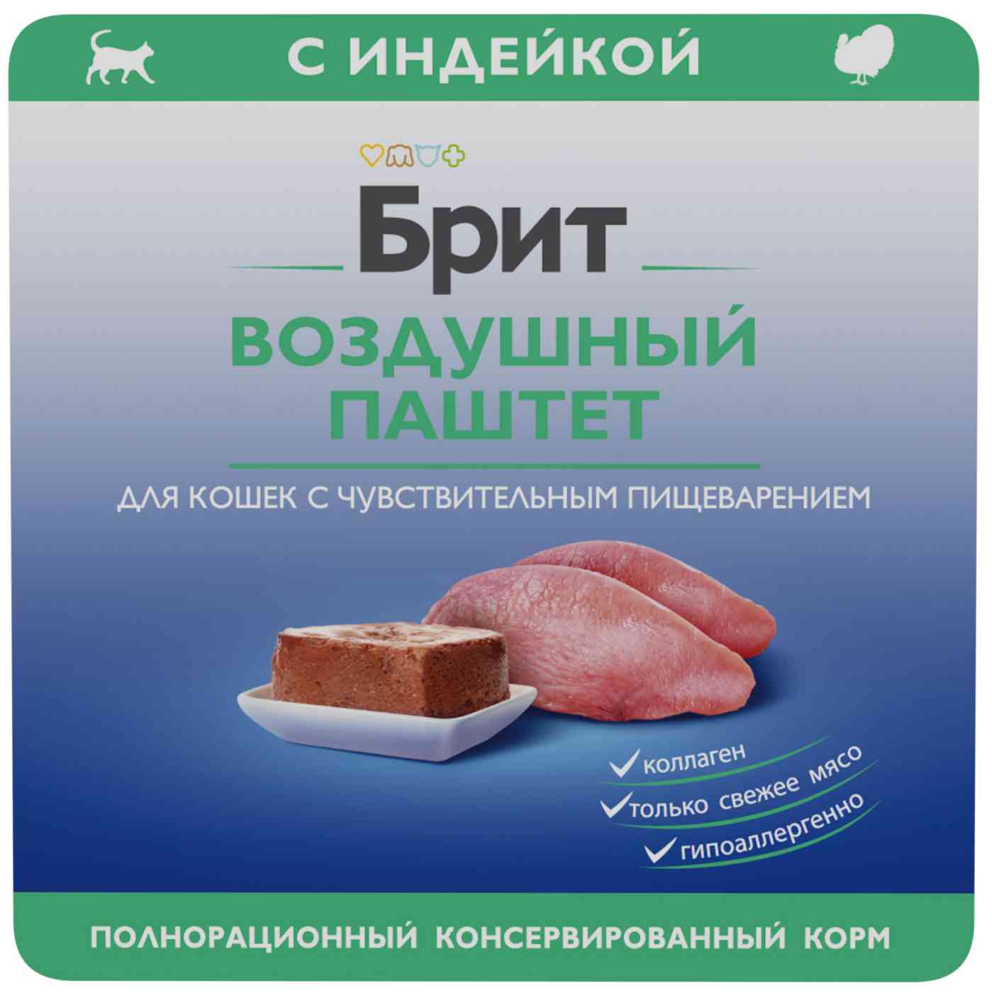 Влажный корм для кошек с чувствительным пищеварением Брит индейка воздушный паштет
