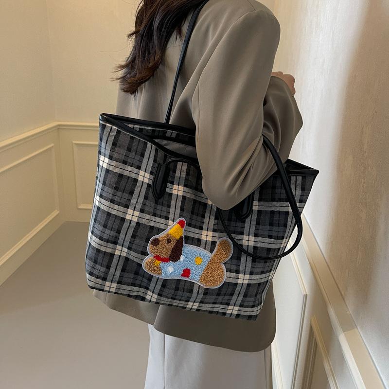 Вместительная клетчатая сумка-тоут женская 2024 новая модная сумка для поездок с высоким чувством стиля, студенческая сумка чёрный