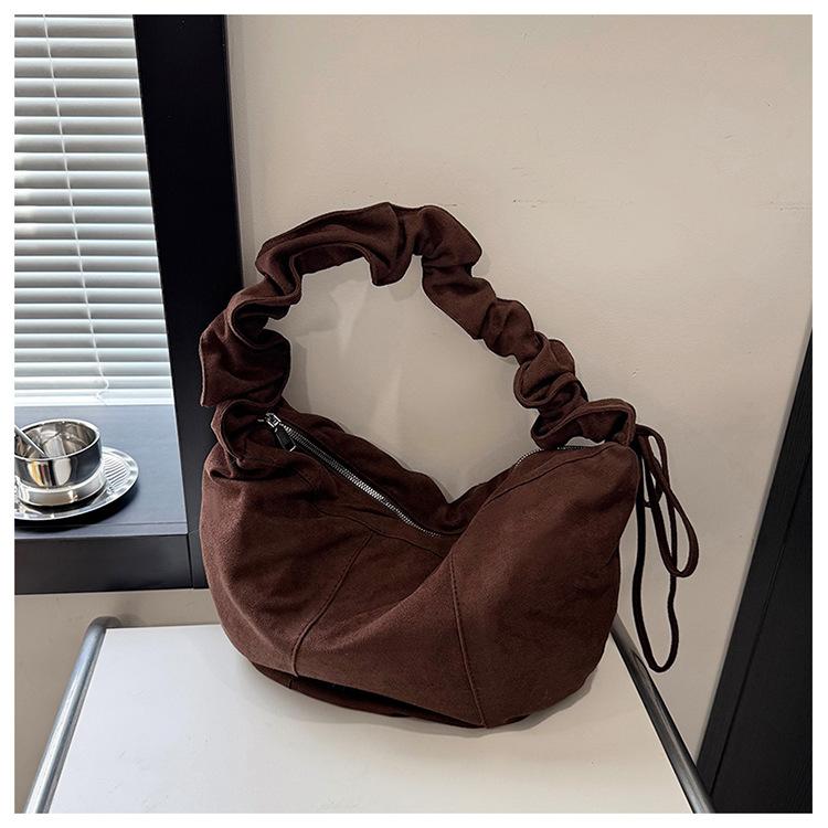 Вместительная матовая ретро-сумка женская осенне-зимняя новая повседневная плиссированная на плечо через плечо сумка-мессенджер сумка-пельмень темно-коричневого