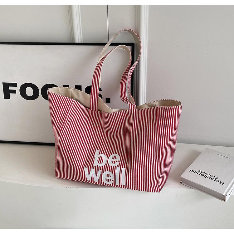 Вместительная полосатая сумка-тоут женская новая летняя на плечо холщовая сумка повседневная универсальная сумка-тоут с надписью красный