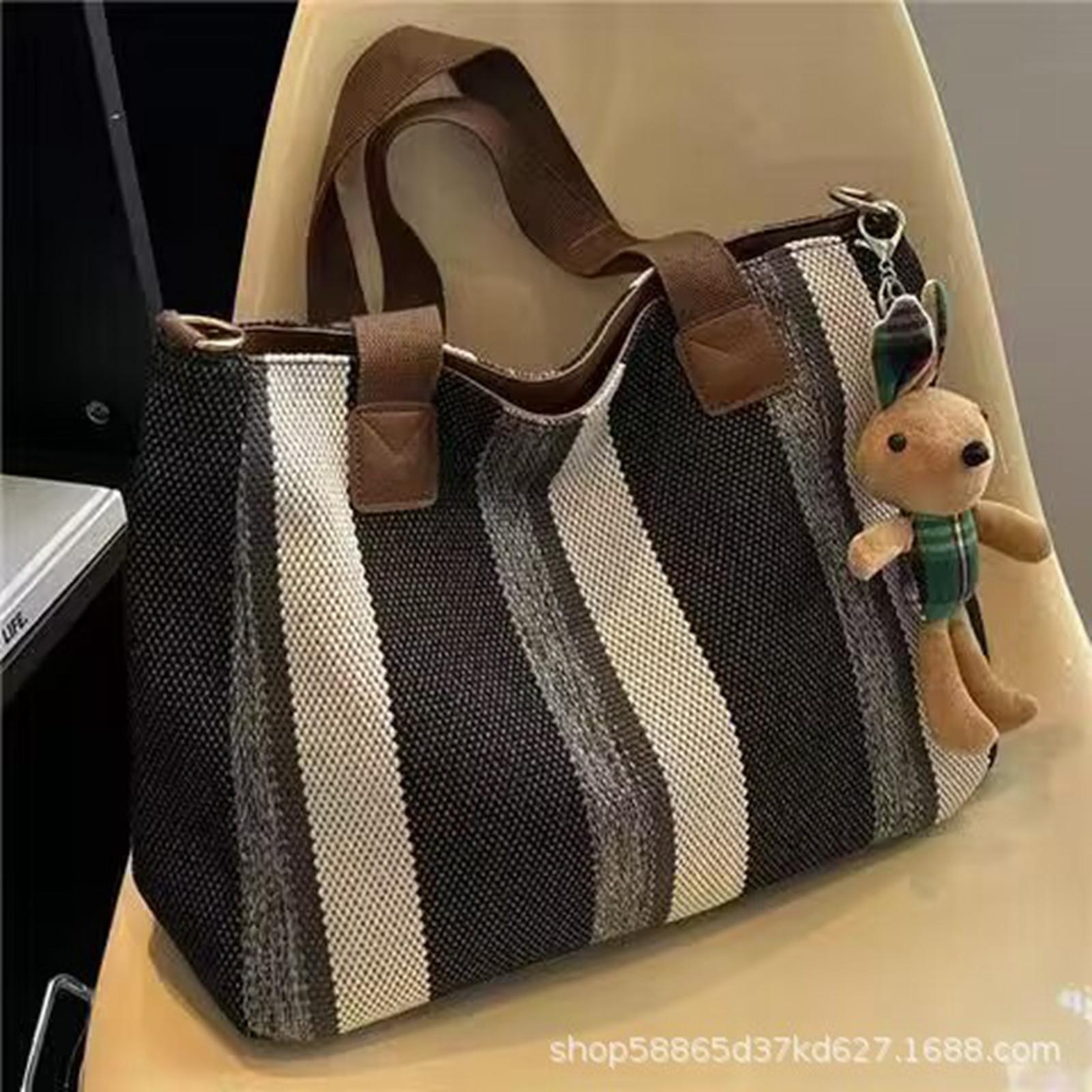 Вместительная полосатая сумка через плечо, модная повседневная сумочка, стильная сумка-тоут, сумка-мессенджер. One Size чёрный
