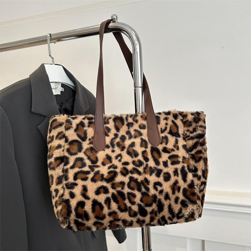 Вместительная пушистая сумка с леопардовым принтом Майяр женская 2025 новая осенне-зимняя универсальная сумка-тоут для поездок на работу, сумка через плечо