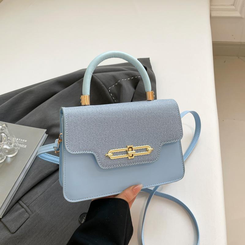 Вместительная ретро 2025 весна новая замок модный тренд строчка женская трендовая кроссбоди на плечо маленькая квадратная сумка синий