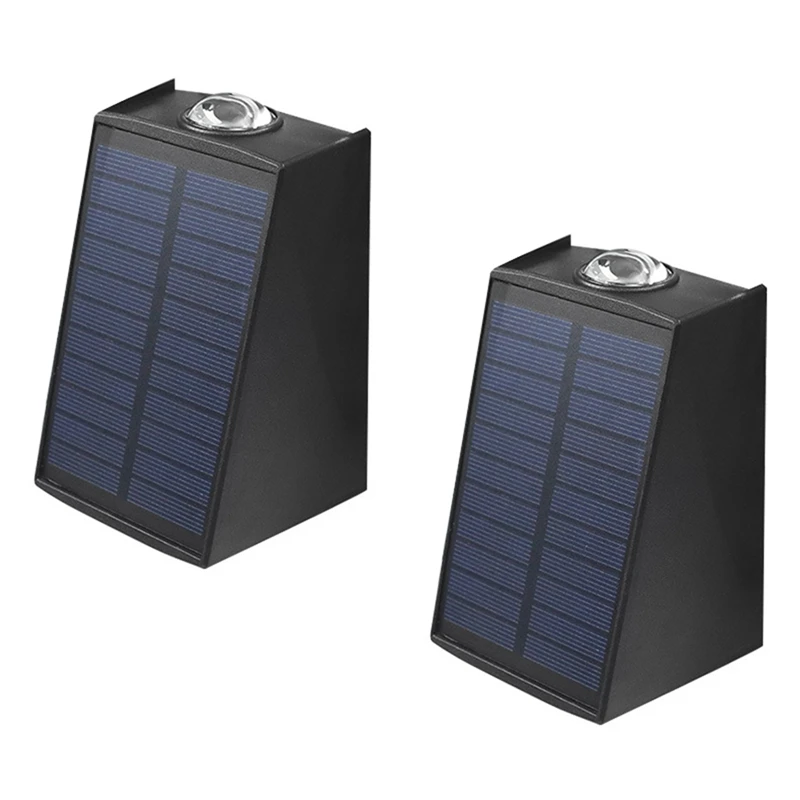 Внешнее настенное освещение, 2 светодиода, водонепроницаемое внешнее освещение на солнечной батарее, черные теплые белые лампы, наружная настенная лампа