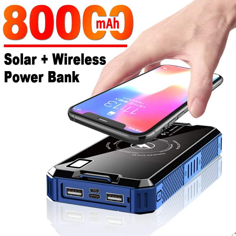 Внешний аккумулятор на солнечной батарее, 80000 мАч, с фонариком