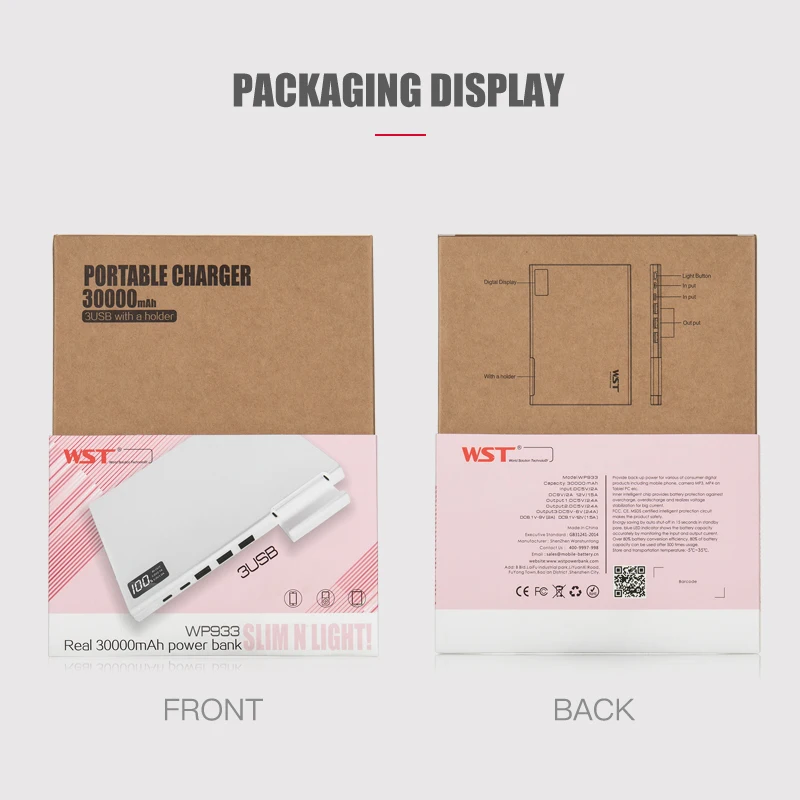 Внешний аккумулятор WST на 30000 мА · ч с цифровым дисплеем и поддержкой быстрой зарядки