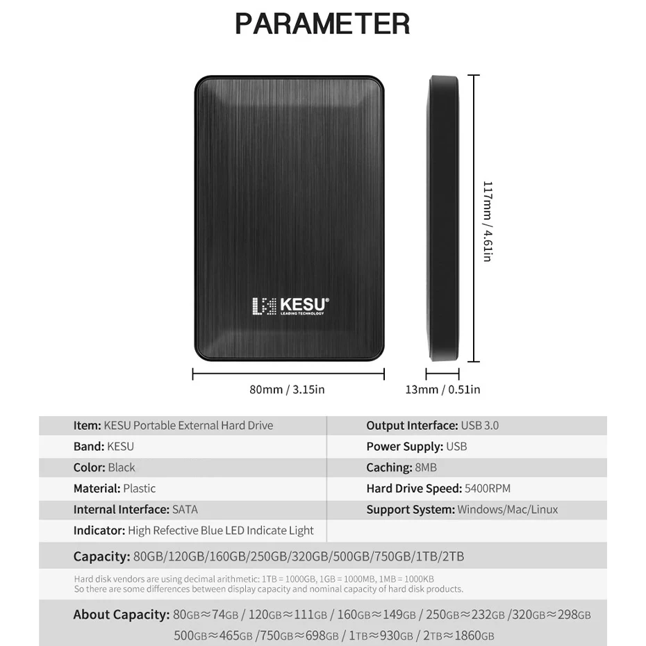 Диск-накопитель KESU Expansion HDD 2,5 дюйма, 500 ГБ/1 ТБ/2 ТБ, USB3.0, Disco-1, externo Storage, совместимый для настольных компьютеров/ноутбуков/MacBook/TV