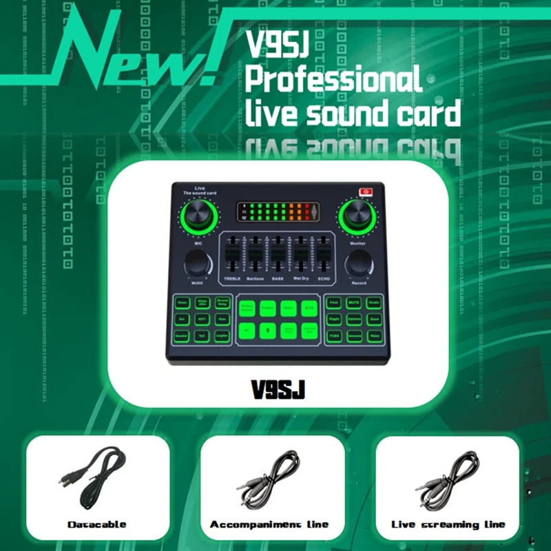 Внешняя звуковая карта V9SJ, микшер для аудио в реальном времени, звуковая карта, преобразователь голоса, микшерная консоль для телефона, компьютера