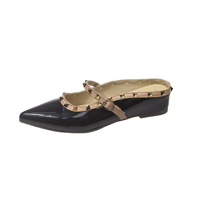 Внутренние увеличивающие рост полушлепанцы женские для улицы 2025 лето новая заклепка острый носок темперамент с юбкой французские сандалии 35 чёрный