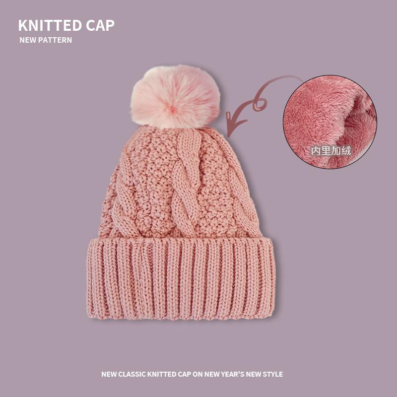 Внутренняя бархатная акриловая вязаная шапка женская осень-зима толстая теплая шапка с шариками one size