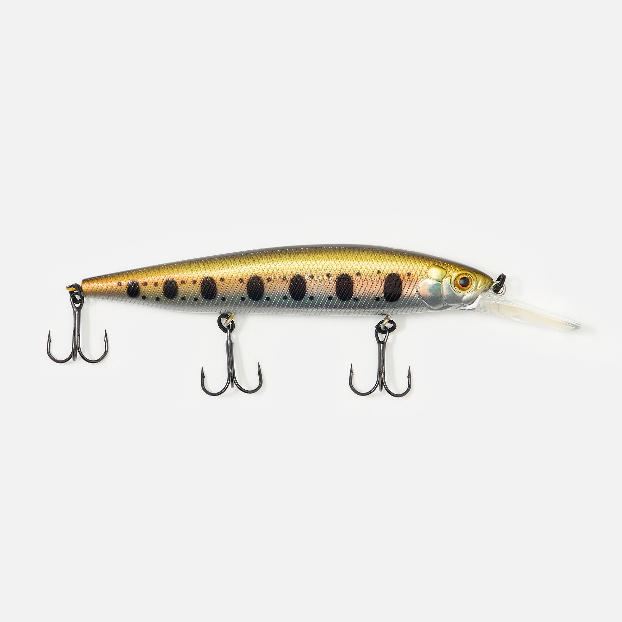 Приманка для ловли рыбы спиннингом. Минноу — продолговатая форма длиной 115 мм. Хорошо управляется, при проводке двигается змейкой. Степень плавучести — плавающая. В комплекте — 3 крючка-тройника. Подходит для щуки и окуня.