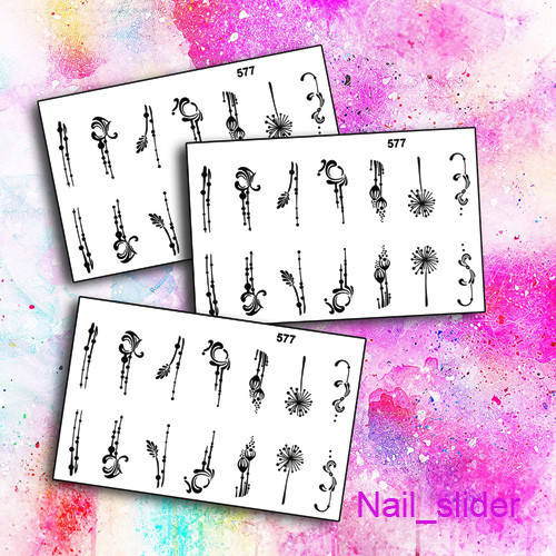 Водные наклейки для дизайна ногтей., Черный