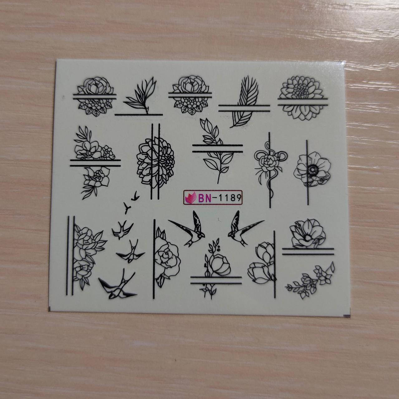 Водные наклейки слайдеры Цветы черно-белые 1189, Черный