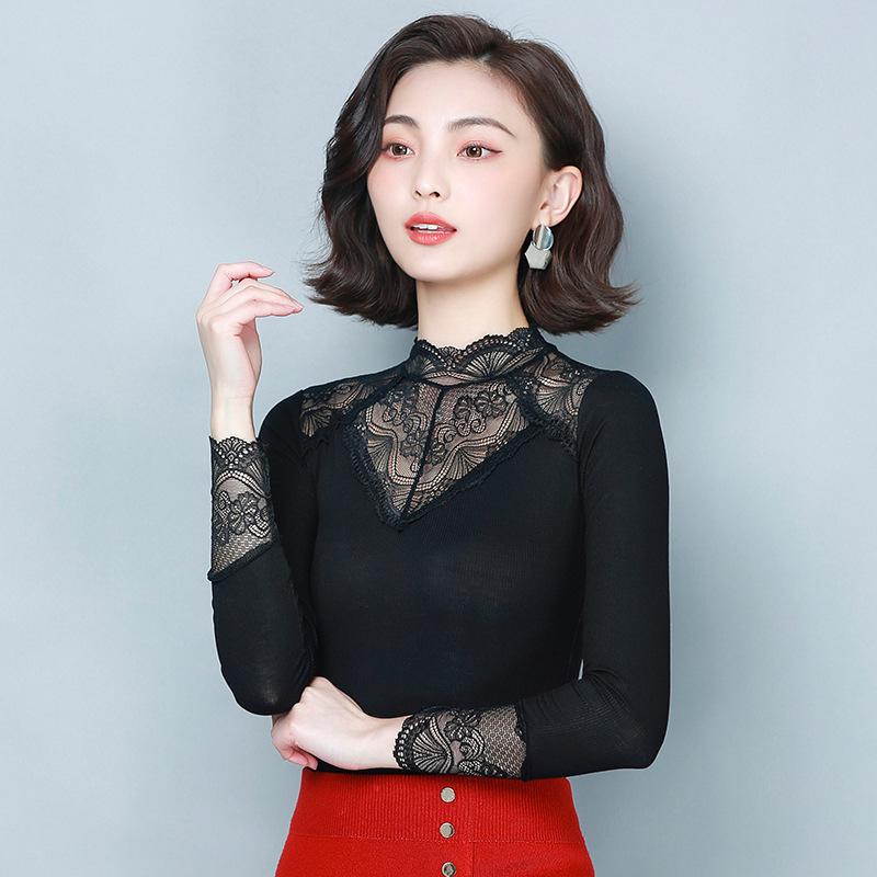 Водолазка кружевная нижняя рубашка осень-зима мода для мам плюс размер черный внутренний плюс бархатный топ 6XL