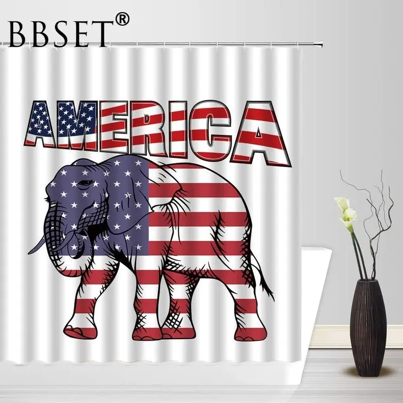 Водонепроницаемая занавеска для душа в виде слона с рисунком американского флага