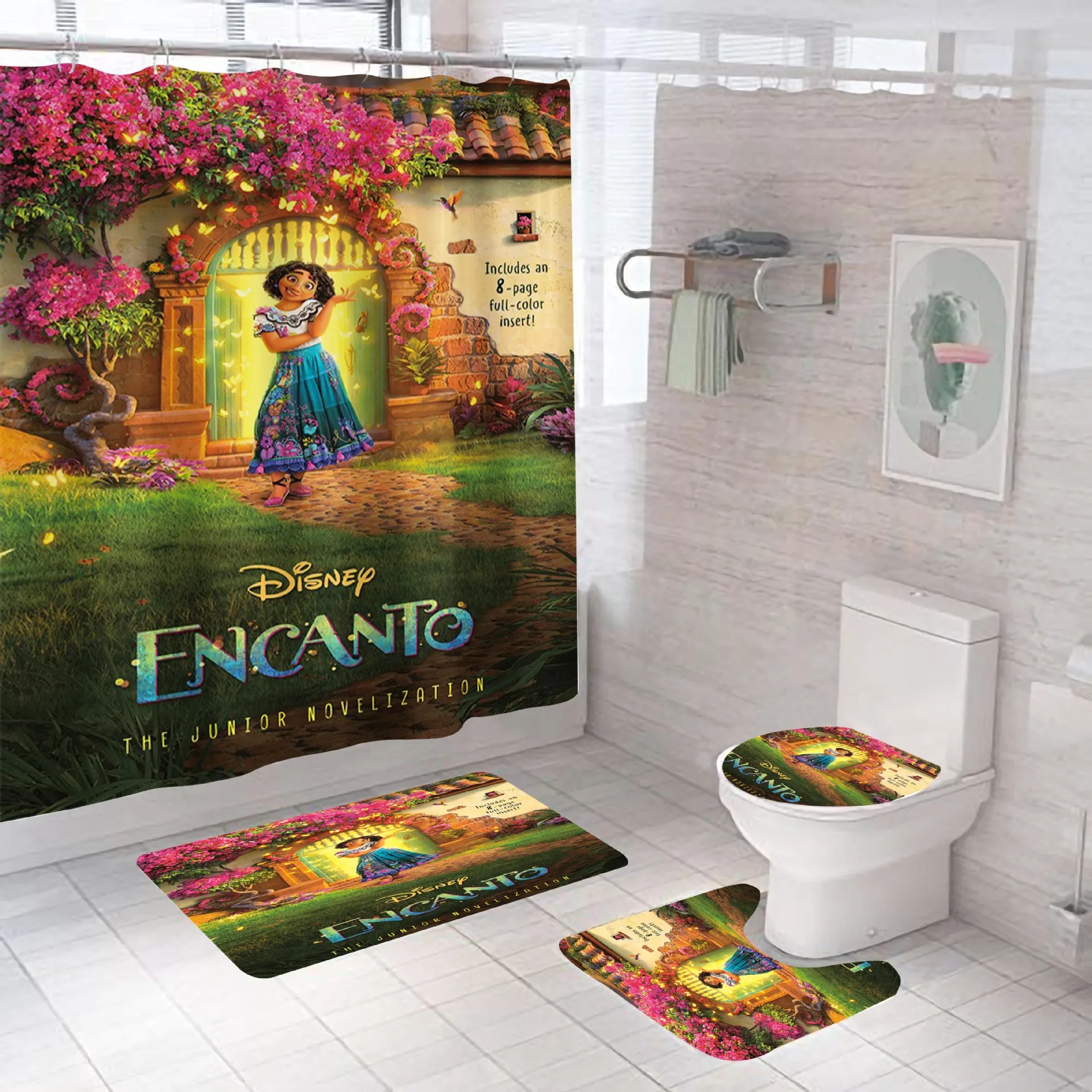 shower curtains 4pcs/set green forest animal white tiger print curtain bathroom toilet cover mat non-slip rug set bathtub decor