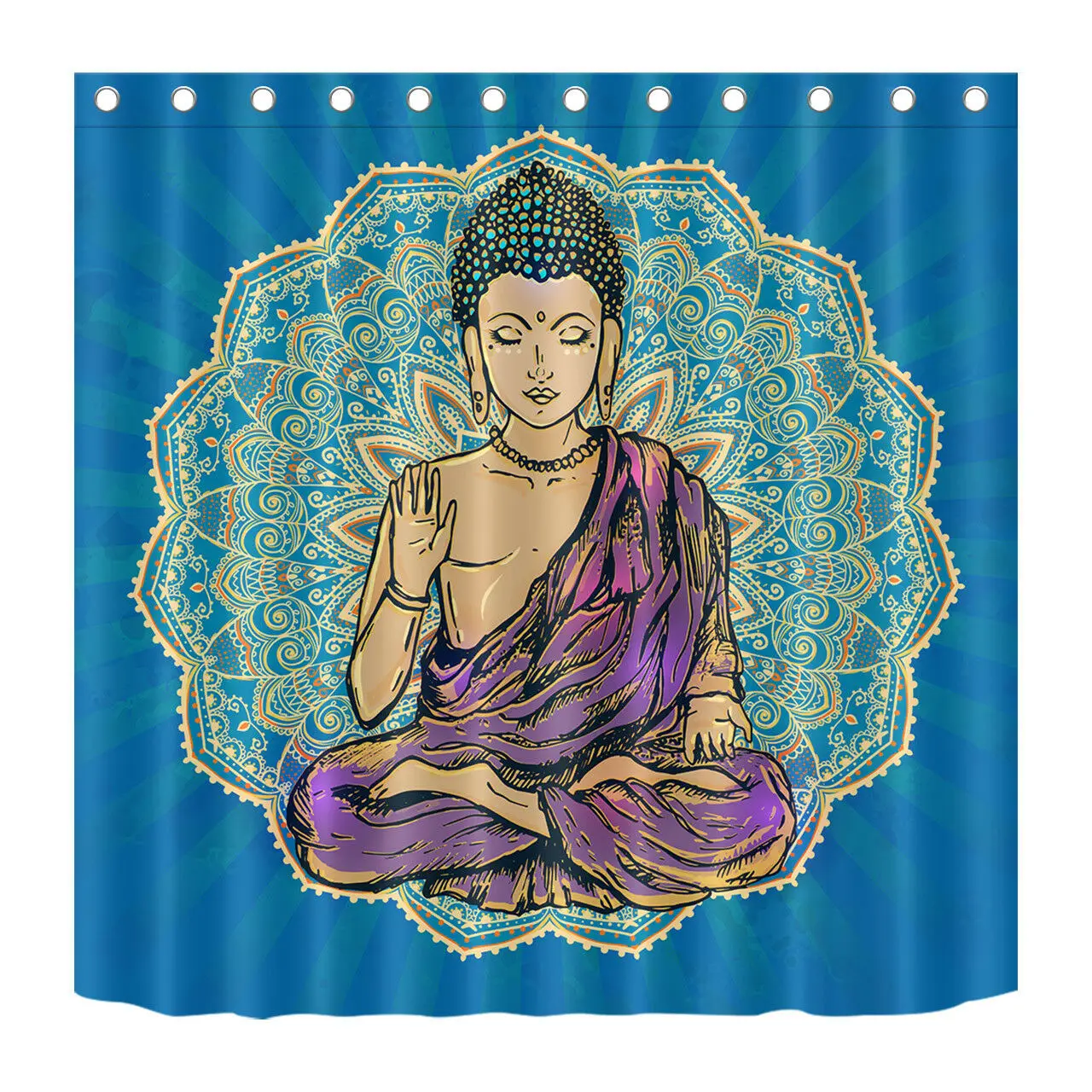 Водонепроницаемая занавеска для душа с рисунком Будды мандалы, комплект крючков для ванной комнаты