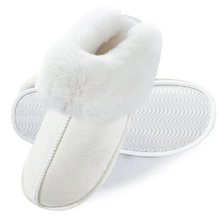 Homieway House Slippers for Women White Memory Foam Fluffy Women s Slippers Soft Warm and Anti-Skid Cozy Slippers for Indoor Outdoor