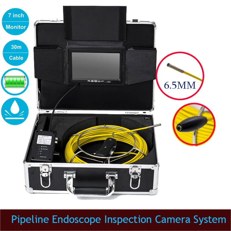 Водонепроницаемая промышленная видеокамера-эндоскоп с кабелем 30 м и ЖК-монитором 7 дюймов, 6,5 мм, 6 белых светодиодов
