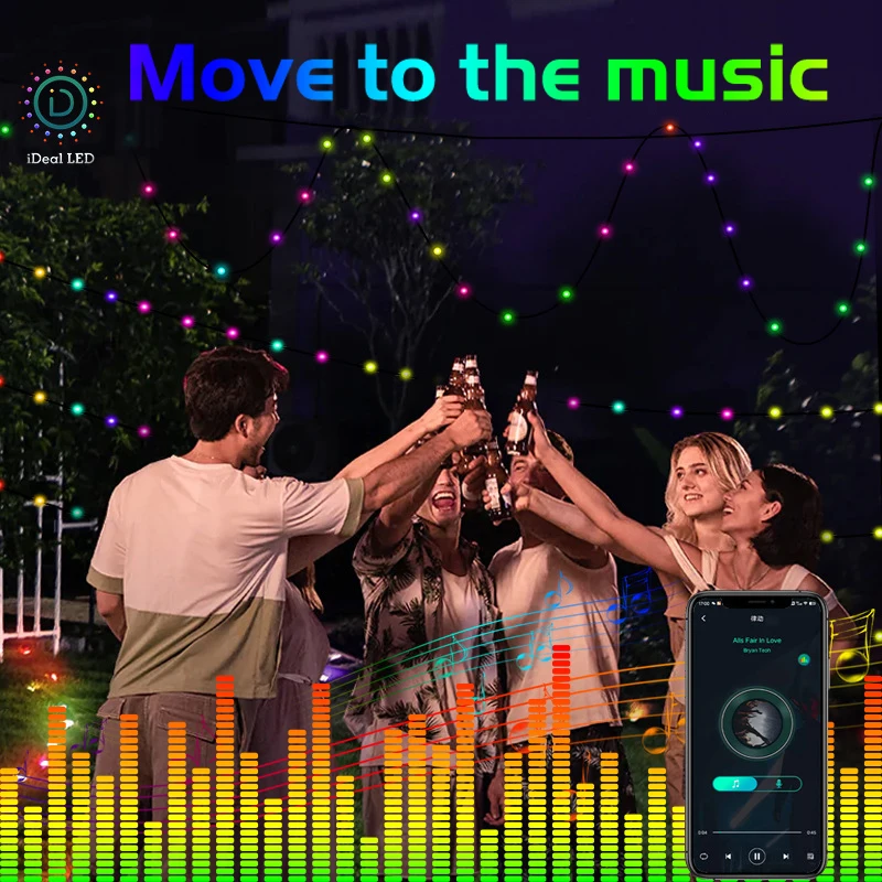 Водонепроницаемая светодиодная гирлянда с ритмом музыки, для свадьбы, дня рождения