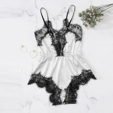 HGWXX7 Plus Size Lingerie Women Satin Lace Bra Lingerie Underpant Siamese Sleepwear Bodysuit